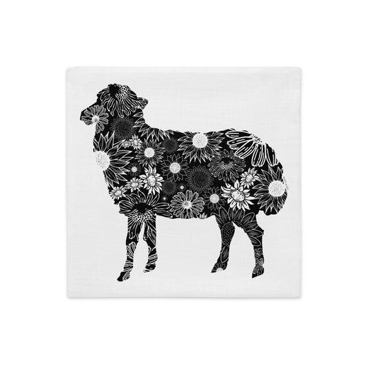 Sheep Silhouette Sunflowers Premium Pillow Case